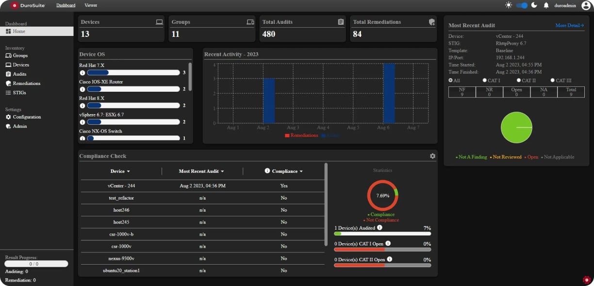 DuroSuite revolutionizes compliance processes through features like automated STIG handling, comprehensive auditing and remediation capabilities, seamless API integration, and a dedicated user interface aimed at simplifying complex tasks, all aimed at keeping your infrastructure ahead of compliance curves while delivering significant time and cost savings.